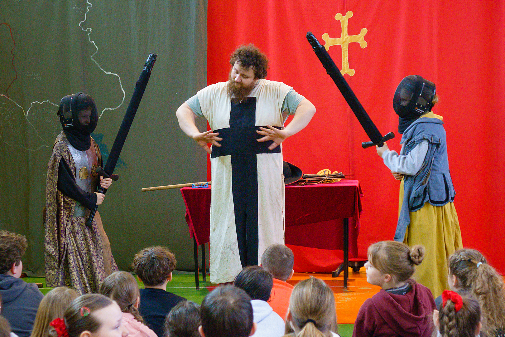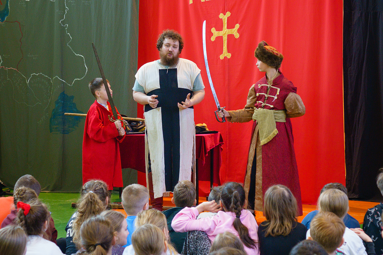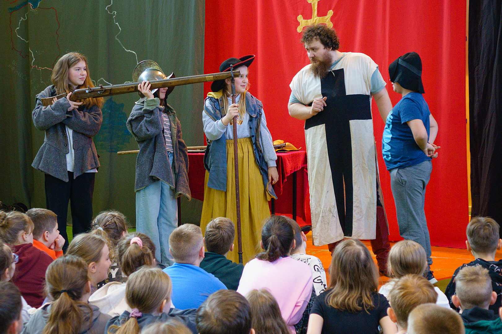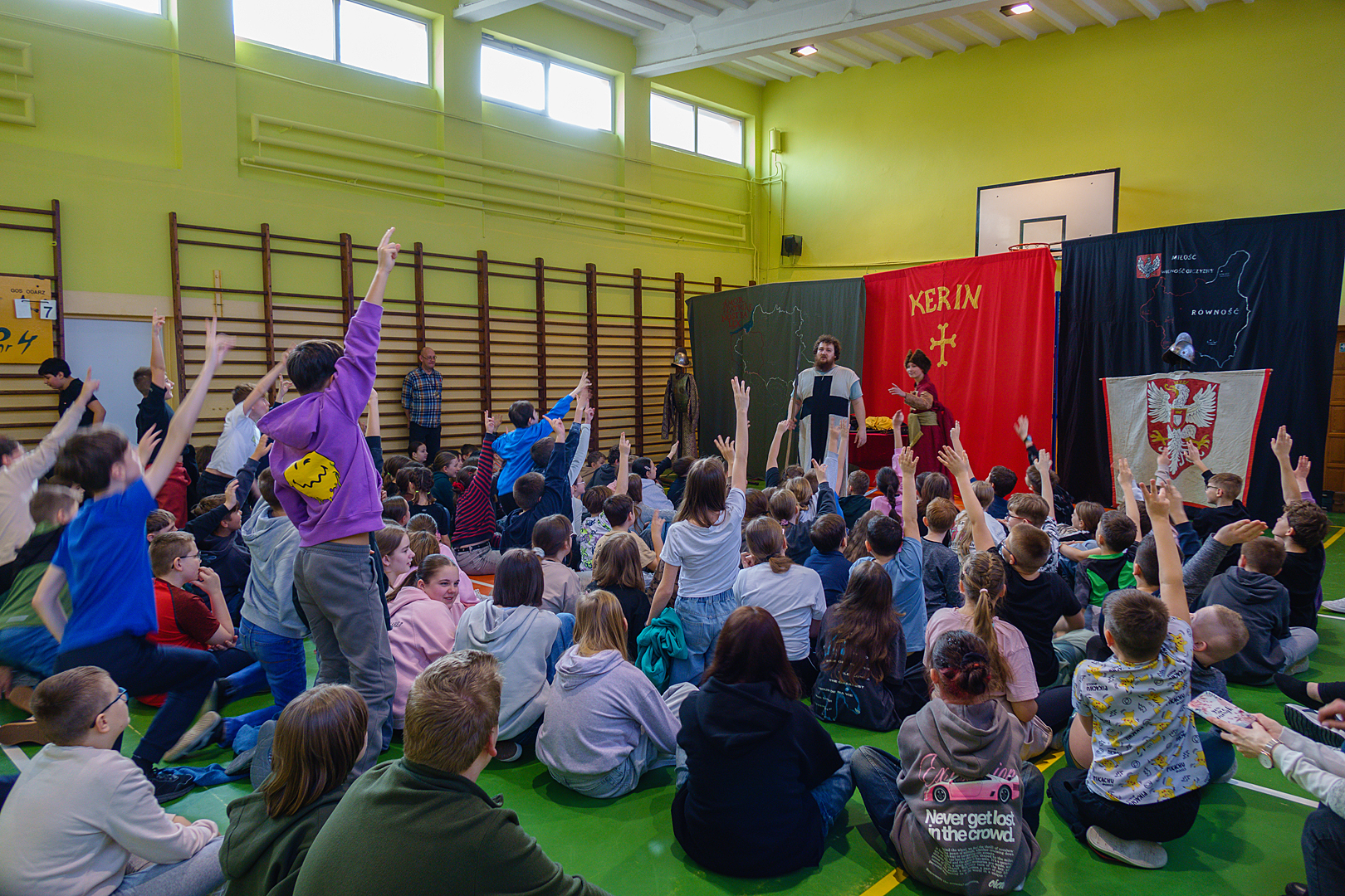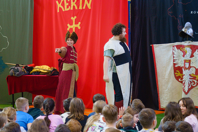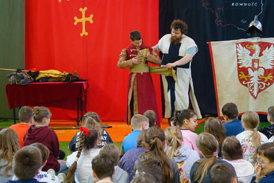 23 lutego w naszej Szkole po raz kolejny odbyła się Żywa Lekcja Historii. Tym razem tematem spektaklu były: „Szlachta i husaria”. Prowadzący w barwny i humorystyczny sposób przekazał nam wiele ciekawych informacji dotyczących życia polskiej szlachty oraz wojskowości Polski w XVII wieku. W roli aktorów wystąpili uczniowie, którzy chętnie zakładali przygotowane dla nich kostiumy i rekwizyty. Ciekawa i humorystyczna opowieść, a także wykorzystanie prawdziwych eksponatów i strojów z epoki pozostawiły w uczniach przekonanie, że historia nie przeminęła, ale jest fascynującą przygodą, w której mogą wziąć udział.