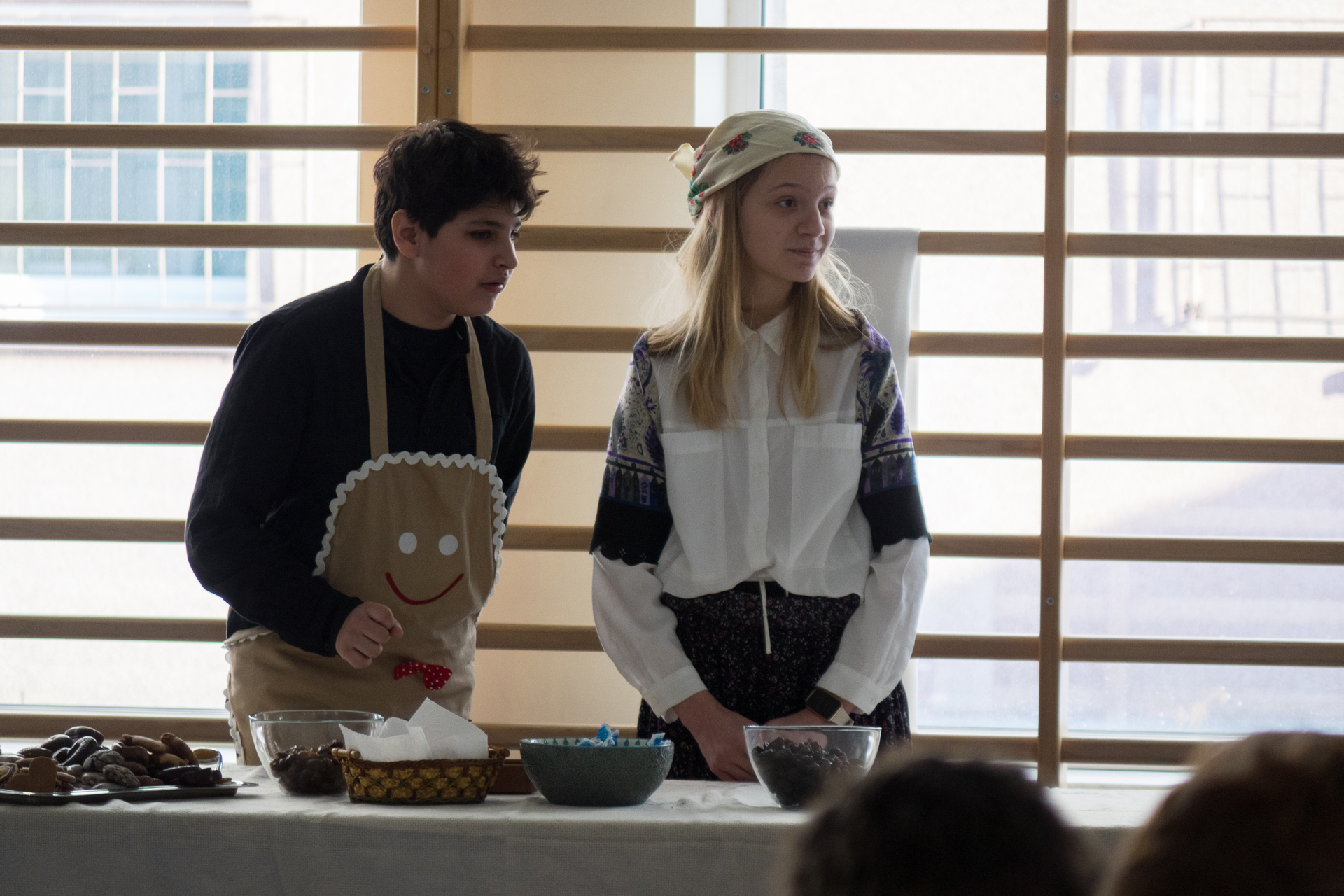 Drugą część dnia wypełniły występy artystyczne przygotowane przez uczniów. Scena zamieniła się w średniowieczny Toruń, a młodzi aktorzy z dużym zaangażowaniem odtwarzali kolejne etapy życia patrona – od dzieciństwa i szkolnych lat, przez studia w Krakowie i we Włoszech, aż po moment ogłoszenia przełomowego dzieła. Nie zabrakło humorystycznych scenek z życia uczonego, efektownych strojów i starannie przygotowanej scenografii. Publiczność reagowała żywiołowo, a na twarzach aktorów i nauczycieli widać było dumę.