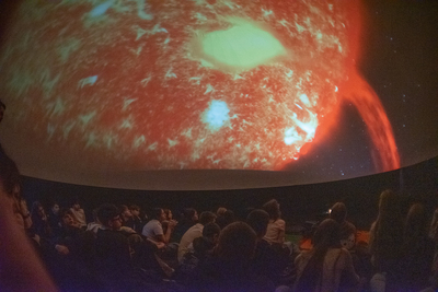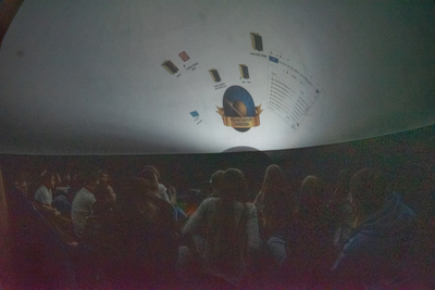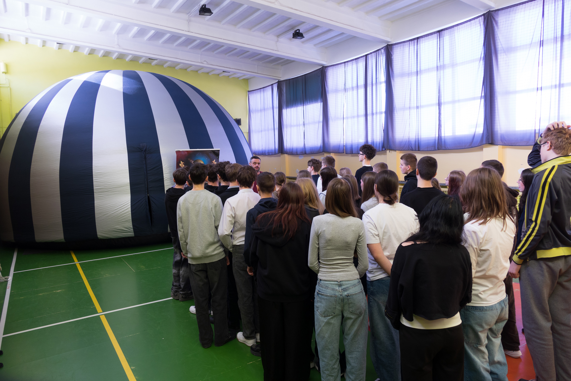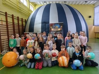 Ogromnym zainteresowaniem cieszyło się mobilne planetarium, którego charakterystyczna kopuła już od rana przyciągała wzrok uczniów. Wchodząc do środka, młodzież przenosiła się w zupełnie inny wymiar – nad głowami rozpościerało się rozgwieżdżone niebo, planety krążyły po swoich orbitach, a prowadzący opowiadał o tajemnicach Wszechświata. W półmroku słychać było tylko ciche szepty zachwytu. Dla wielu była to pierwsza okazja, by zobaczyć, jak wygląda ruch ciał niebieskich i zrozumieć teorię heliocentryczną nie z podręcznika, lecz niemal „na żywo”. Trudno było oprzeć się wrażeniu, że właśnie w takich chwilach nauka przestaje być obowiązkiem, a staje się fascynującą przygodą.