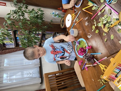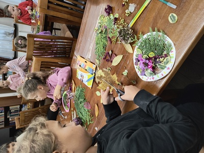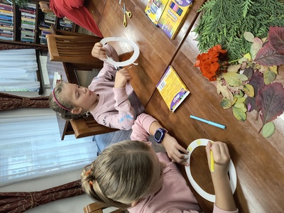 W dniu 24.09.2025 r. uczniowie klasy 2b brali udział w warsztatach plastycznych "Jesienny witraż", które miały miejsce w Bibliotece Miejskiej w Andrychowie.